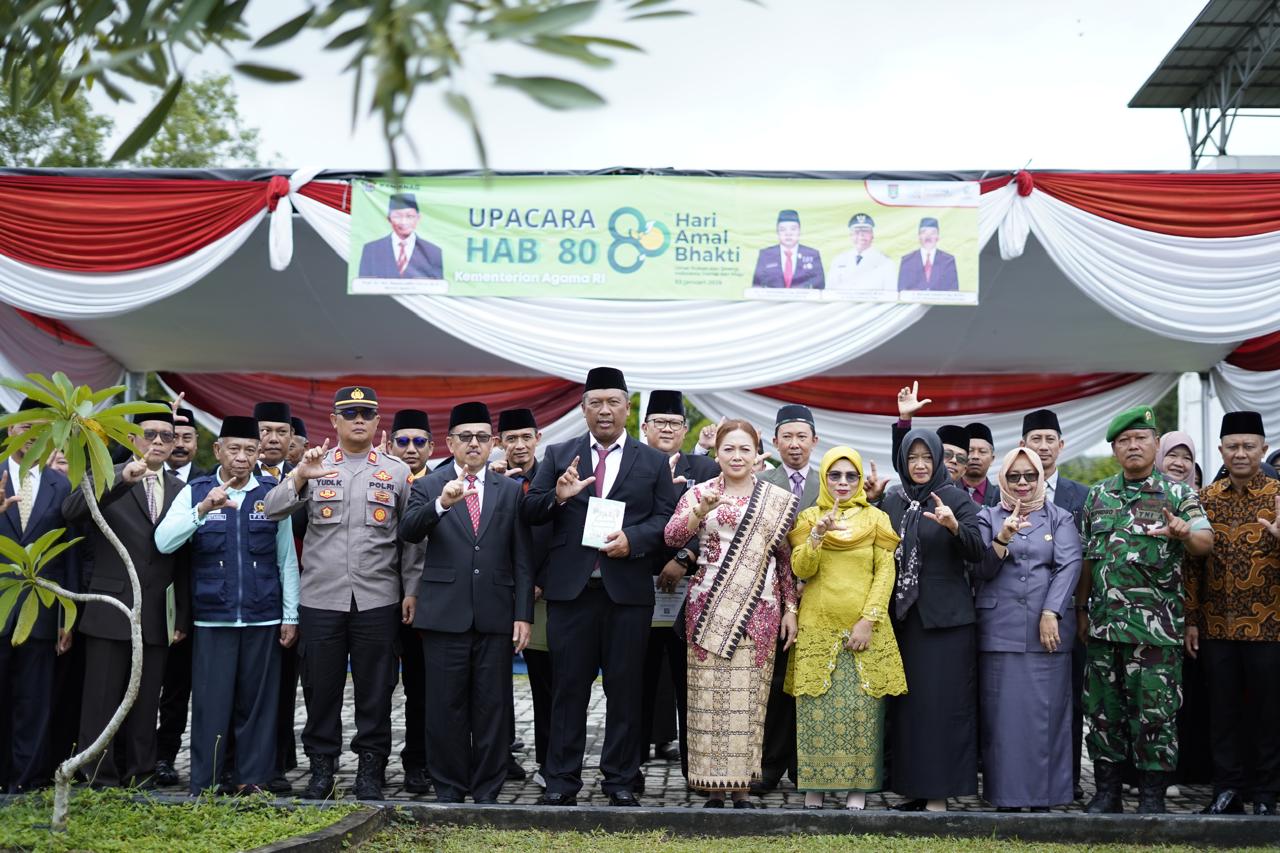 Pelaksana Tugas (Plt.) Bupati Lampung Tengah, I Komang Koheri, bertindak sebagai inspektur upacara pada peringatan Hari Amal Bakti (HAB) ke-80 Kementerian Agama Republik Indonesia yang digelar di Lapangan Merdeka Gunung Sugih.