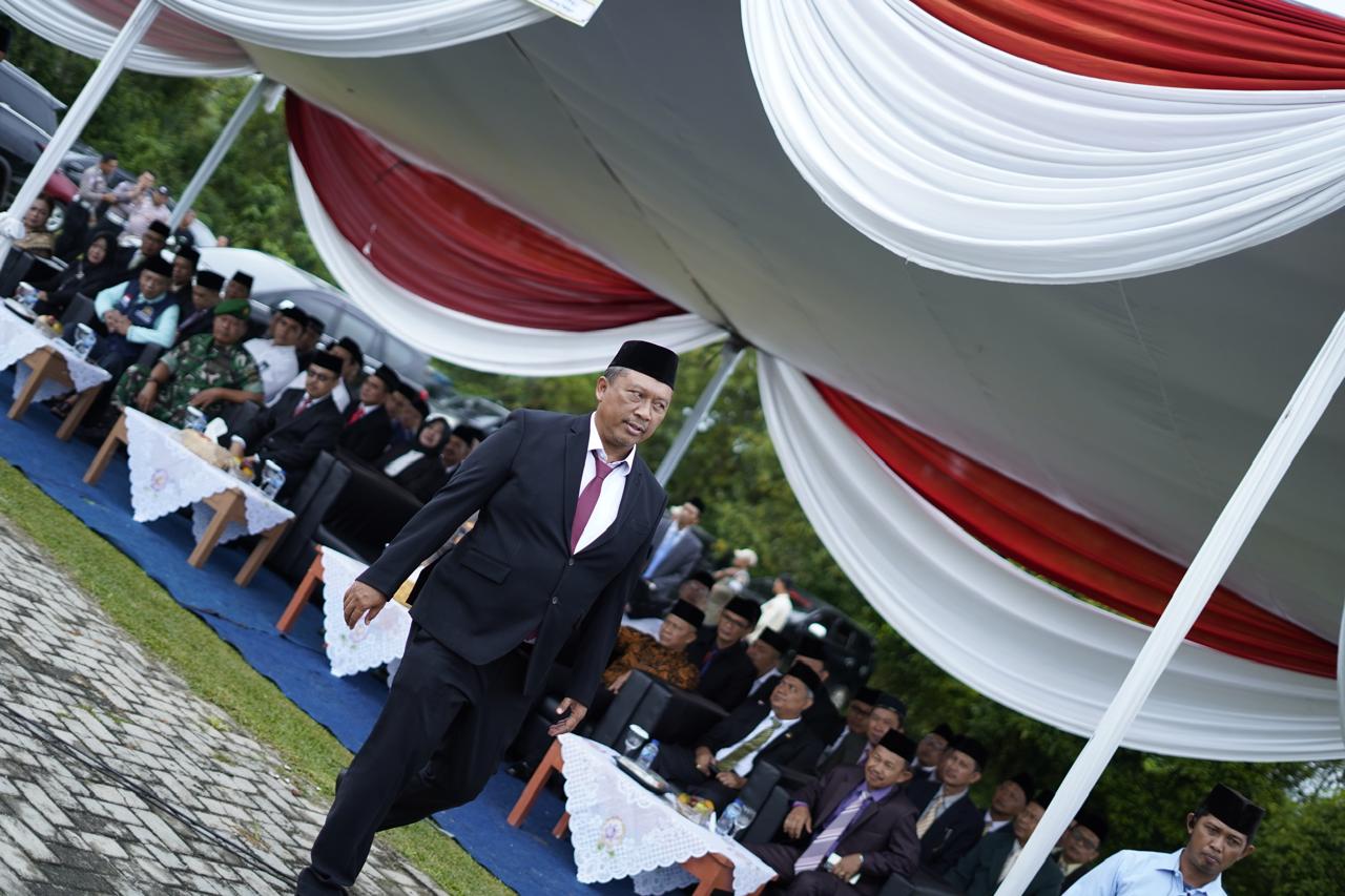 Dalam amanatnya, Plt. Bupati I Komang Koheri membacakan sambutan Menteri Agama Republik Indonesia. Ia menyampaikan bahwa Kementerian Agama memiliki peran strategis dalam menjaga persatuan dan kesatuan bangsa melalui penguatan kerukunan umat beragama. Moderasi beragama, menurutnya, harus terus diteguhkan sebagai fondasi utama dalam kehidupan bermasyarakat, berbangsa, dan bernegara di tengah keberagaman yang ada.