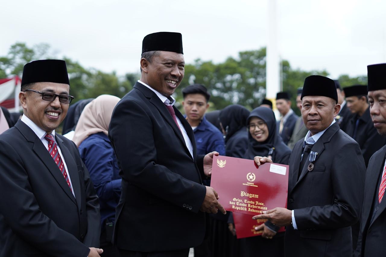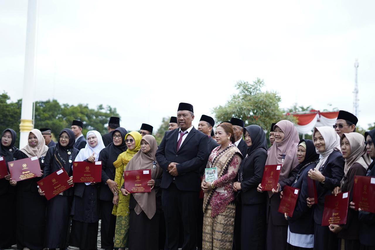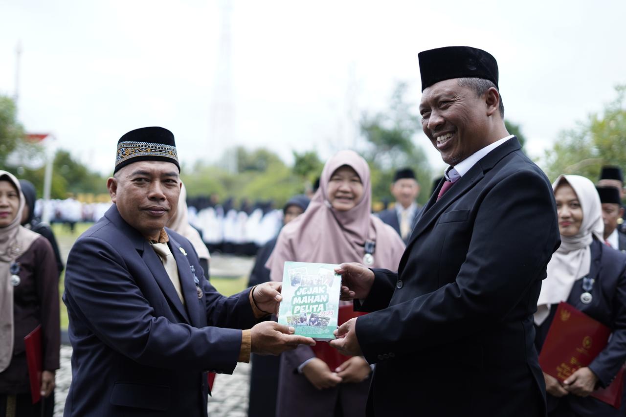 Usai pelaksanaan upacara, Plt. Bupati Lampung Tengah I Komang Koheri secara simbolis menyerahkan penghargaan Satyalancana kepada sejumlah Aparatur Sipil Negara (ASN) di lingkungan Kementerian Agama Kabupaten Lampung Tengah. Penghargaan tersebut diberikan sebagai bentuk apresiasi atas dedikasi, loyalitas, dan pengabdian para ASN dalam menjalankan tugas dan tanggung jawabnya selama ini.