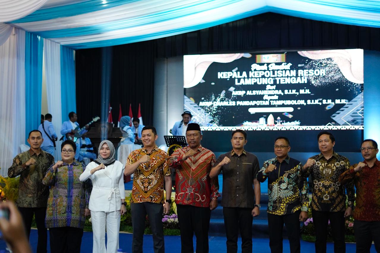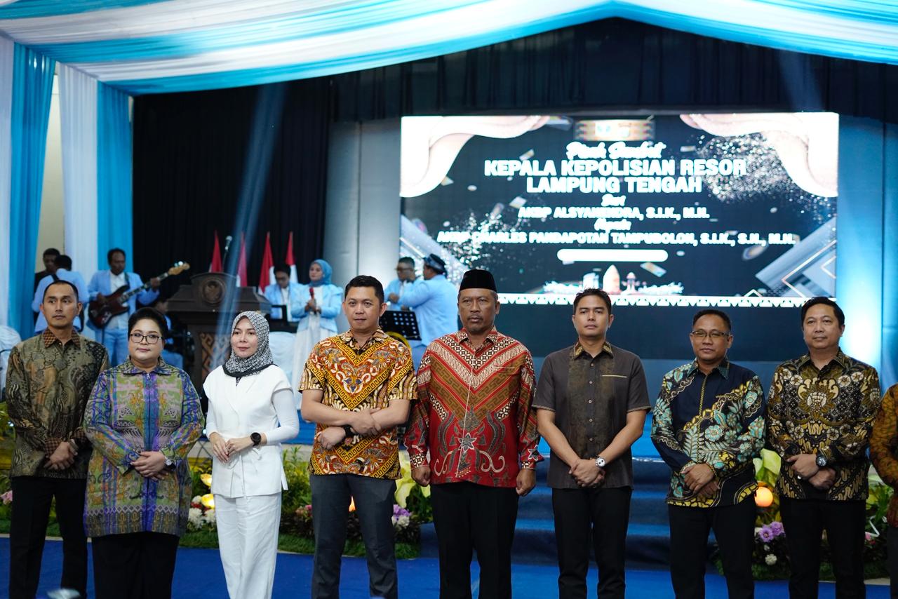 Acara pisah sambut tersebut turut dihadiri unsur Forkopimda Kabupaten Lampung Tengah, pejabat utama Polres Lampung Tengah, para kepala organisasi perangkat daerah (OPD), perwakilan TNI, tokoh agama, tokoh masyarakat, tokoh adat, serta tamu undangan lainnya.