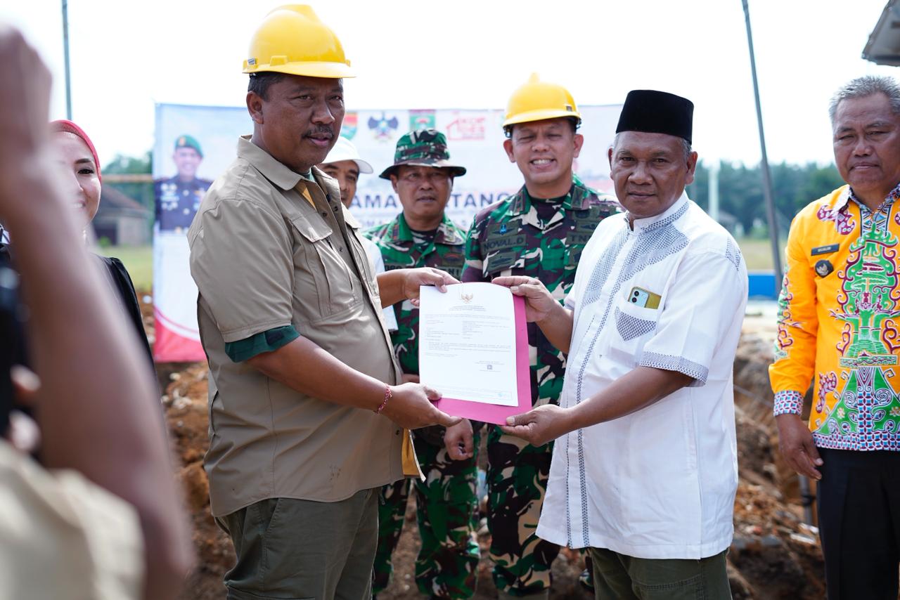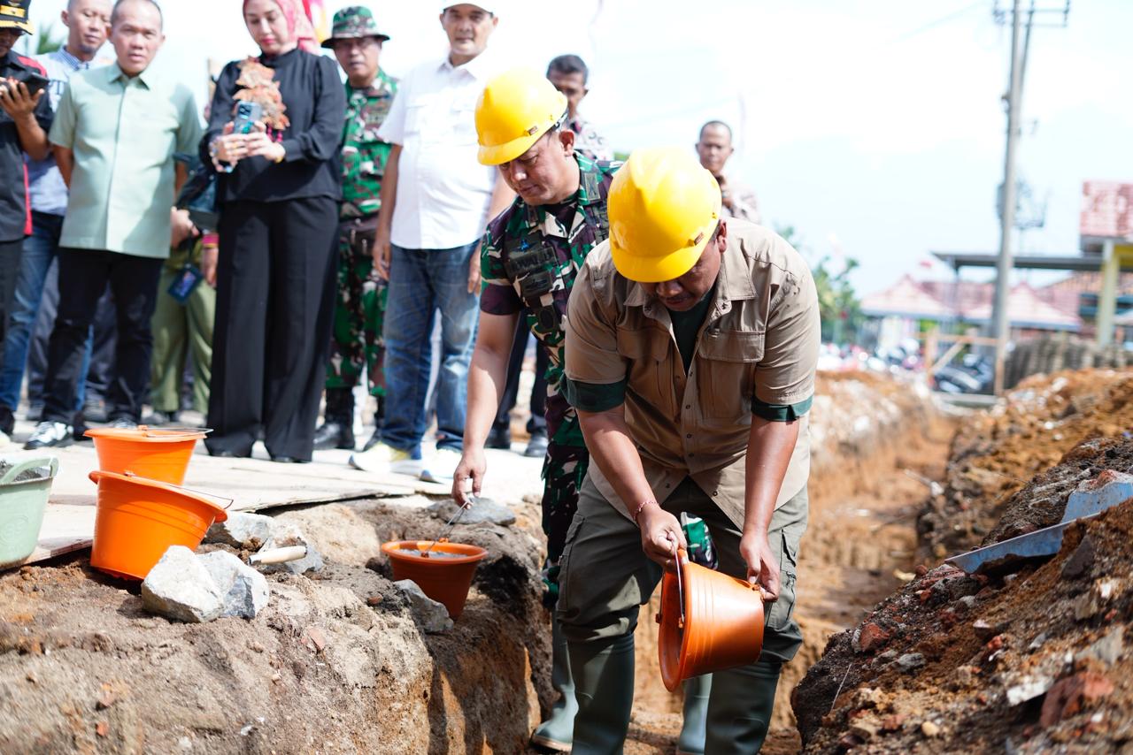 (Plt) Bupati Lampung Tengah, I Komang Koheri S.E., M.Sos bersama Komandan Kodim 0411/KM Letkol Inf Noval Darmawan, S.H., M.I.P. melaksanakan peletakan batu pertama pembangunan Koperasi Desa Merah Putih (KDMP) Kampung Sinar Luas.