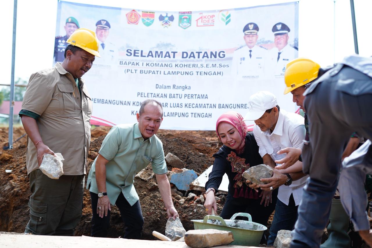 Pelaksana Tugas (Plt) Bupati Lampung Tengah, I Komang Koheri S.E., M.Sos bersama Komandan Kodim 0411/KM Letkol Inf Noval Darmawan, S.H., M.I.P. melaksanakan peletakan batu pertama pembangunan Koperasi Desa Merah Putih (KDMP) Kampung Sinar Luas, Kecamatan Bangunrejo, Jumat (16/1/2026).