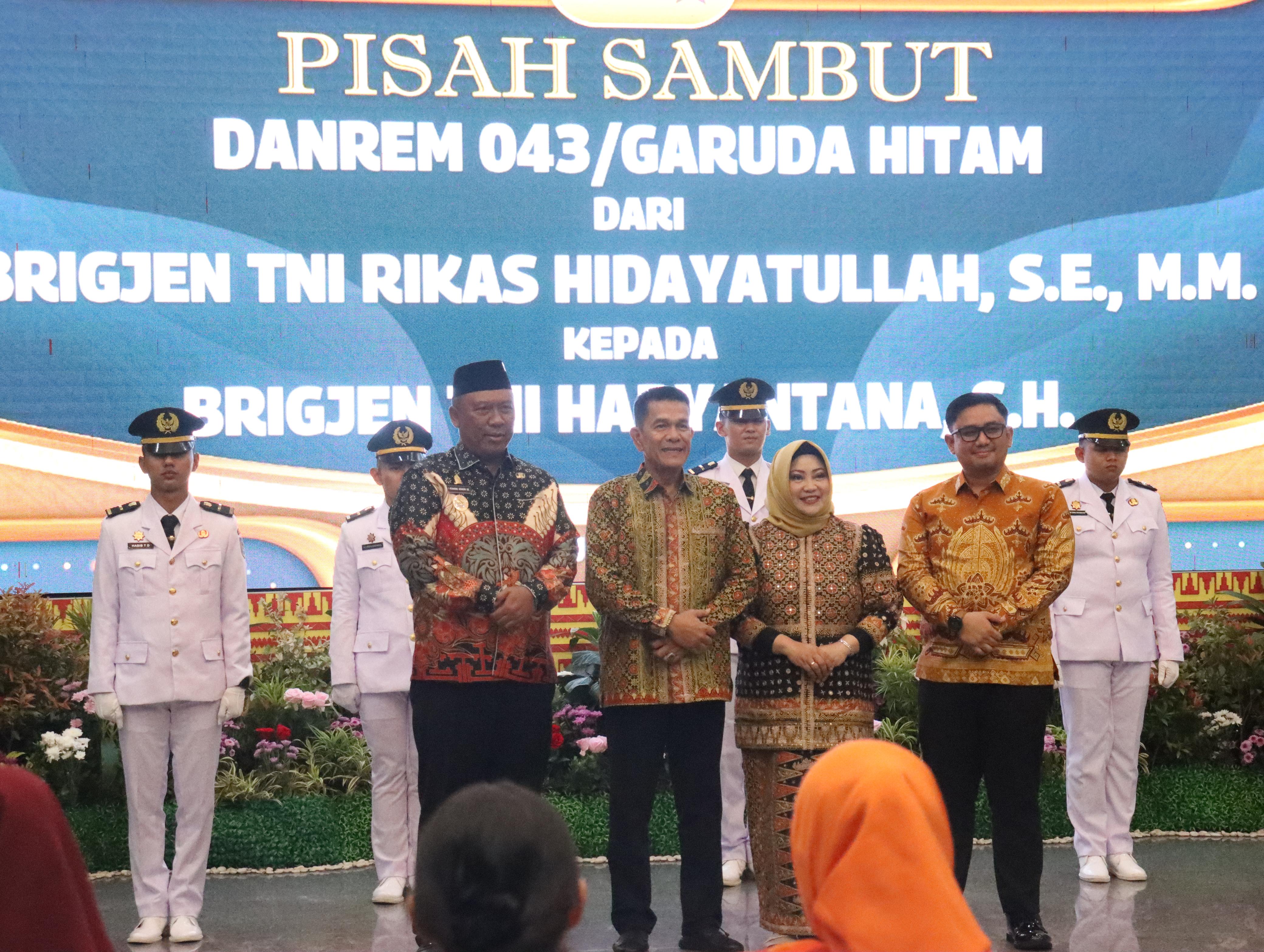 Wakil Bupati Lampung Tengah, I Komang Koheri, S.E., hadir dalam acara pisah sambut yang penuh khidmat antara Brigjen TNI Rikas Hidayatullah, S.E., M.M. dan Brigjen TNI Haryantana, S.H. Bertempat di Mahan Agung, kamis,(07/08/2025). Acara tersebut juga dihadiri oleh sejumlah pejabat penting di Provinsi Lampung, di antaranya Gubernur Lampung, Rahmat Mirzani Djausal, Ketua TP PKK Provinsi Lampung, Ny. Purnama Wulan Sari Mirza, serta para unsur Forkopimda Provinsi Lampung. Selain itu, para Bupati dan Walikota se-Provinsi Lampung turut serta dalam acara yang berlangsung dengan penuh suasana kebersamaan dan kekeluargaan tersebut. Brigjen TNI Rikas Hidayatullah, yang selama ini menjabat sebagai Danrem 043/Garuda Hitam, akan melanjutkan karirnya sebagai Direktur Lembaga Sekolah Calon Perwira (Secapa) TNI AD yang terletak di Bandung.