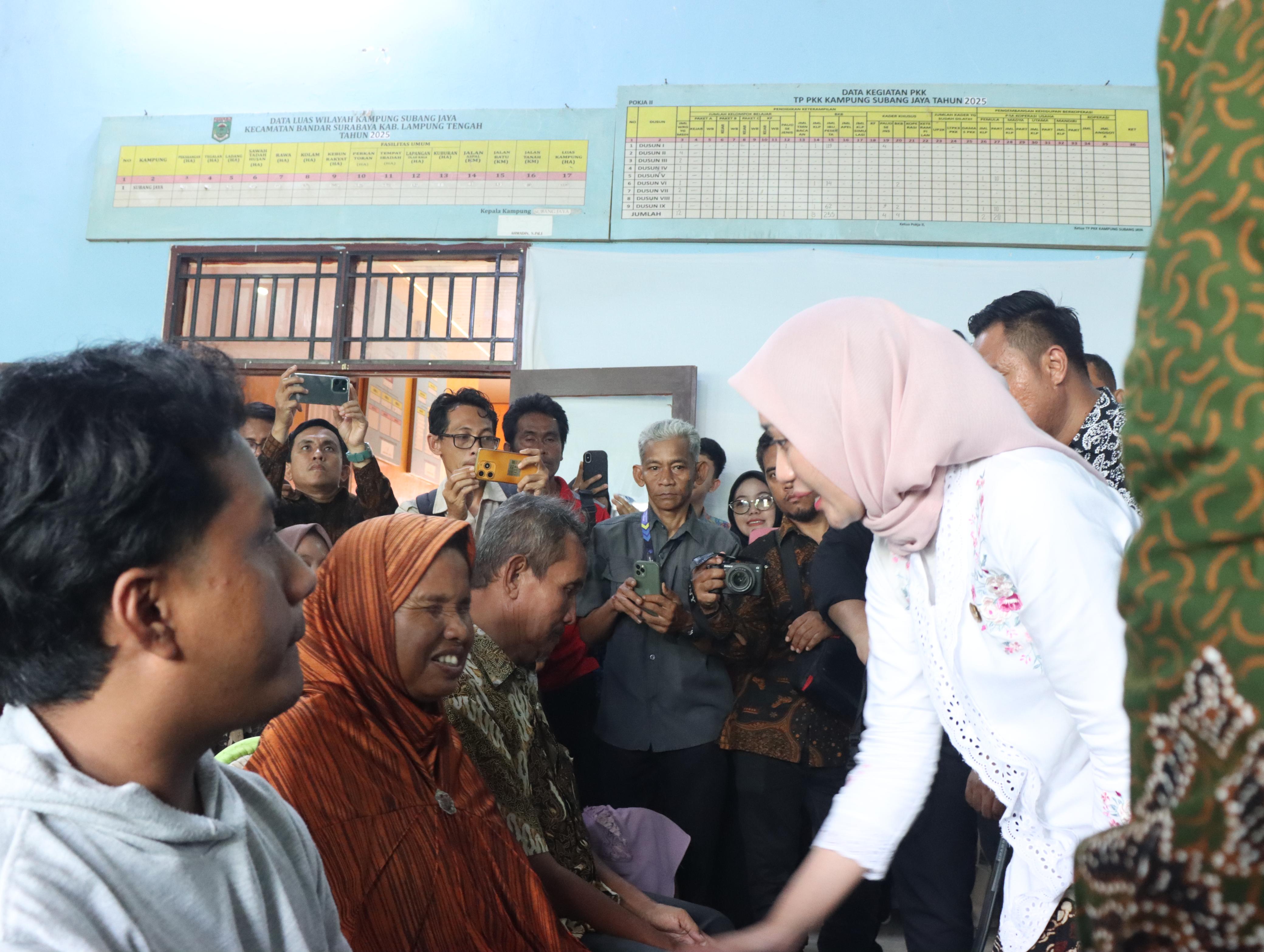 Wakil Gubernur Lampung, Jihan Nurlela, bersama Wakil Bupati Lampung Tengah, I Komang Koheri, menghadiri acara Pelayanan Sosial Jejaring Masyarakat (YANSOS JEJAMA) Tahun 2025 yang diselenggarakan oleh Dinas Sosial Provinsi Lampung. Acara tersebut berlangsung di Balai Kampung Subang Jaya, Kecamatan Bandar Surabaya, Lampung Tengah.kamis(07/08/2025) Hadir pula dalam acara tersebut Kepala Dinas Sosial Provinsi Lampung, Drs. Aswarodi, M.Si., Kepala Dinas Sosial Kabupaten Lampung Tengah, Ari Nugraha Mukti, S.STP., MM., serta Camat Bandar Surabaya, Ahmad Arifin, S.Sos. Acara ini juga dihadiri oleh para kepala perangkat daerah terkait dan sejumlah tamu undangan yang turut mendukung jalannya kegiatan ini. Dalam sambutannya, Wakil Bupati Lampung Tengah, I Komang Koheri, menyampaikan apresiasi dan ucapan terima kasih atas dipilihnya Kabupaten Lampung Tengah sebagai lokasi penyelenggaraan acara tersebut.